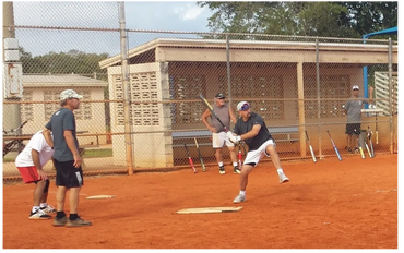 Start the day with some pre-game stretching, throwing, and batting practice.